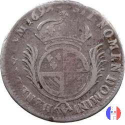 17 Sols 3 denari di Strasburgo alle insegne Dritto: ↻ MONETA • NOVA • ARGENTINENSIS. Giglio araldico. Verso: ↻ SIT.NOMEN.DOMINI BENEDICTVM (ANNO) Stemma rotondo di Francia coronato tra due insegne. | |
