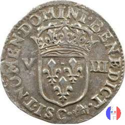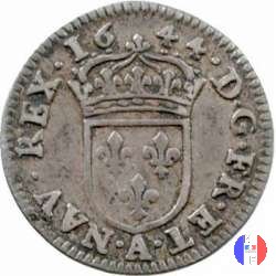 15 denari ai 2 L coronati Dritto: ↻ LVD.XIII.FR.ET.NAV.REX.(anno) Due L accostate sotto una corona con tre gigli posti due su uno. Verso: ↻ PIECE.DE.XV.DENIERS. Croce con tre bisanti posti all'estremità di ciascun braccio , cantonata da quattro gigli divergenti dal centro. Segno di zecca all'esergo. | |