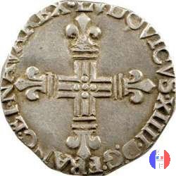 30 denari ai 2 L coronati Dritto: ↻ LVD.XIII.FR.ET.NAV.REX.(anno) Due L accostate sotto una corona con tre gigli posti due su uno. Verso: ↻ PIECE.DE.XXX.DENIERS. Croce con tre bisanti posti all'estremità di ciascun braccio , cantonata da quattro gigli divergenti dal centro. Segno di zecca all'esergo. | |
