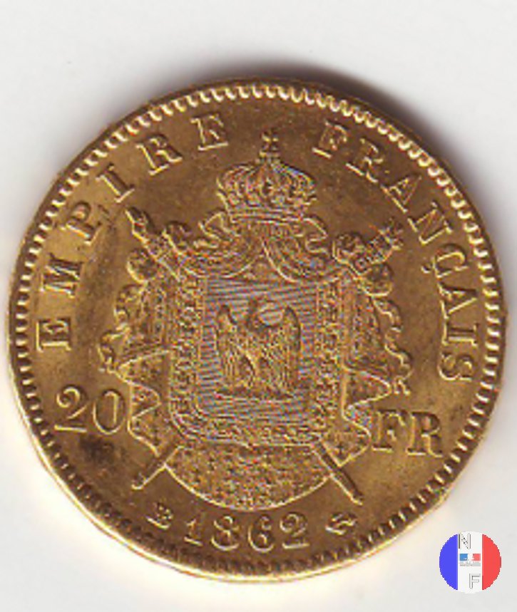 6047 20 franchi - testa laureata (1862 - Strasburgo)