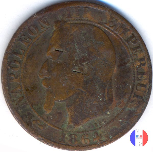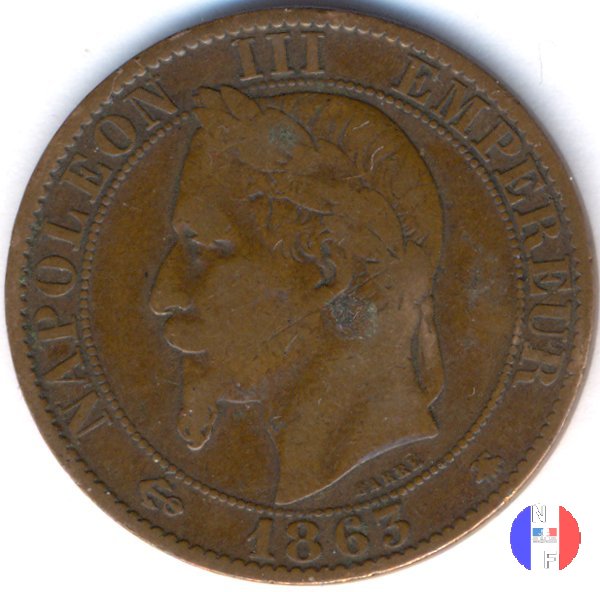 5680 10 centesimi - testa laureata (1863 - Parigi)