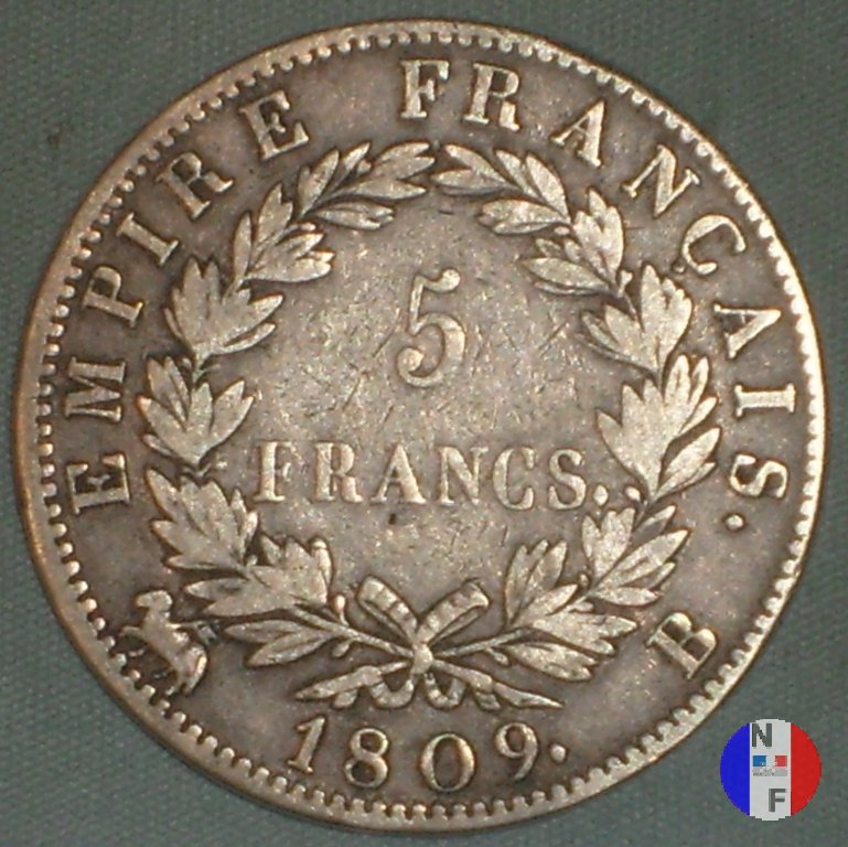 5706 5 franchi - testa laureata, tipo Empire (1809 - Rouen)
