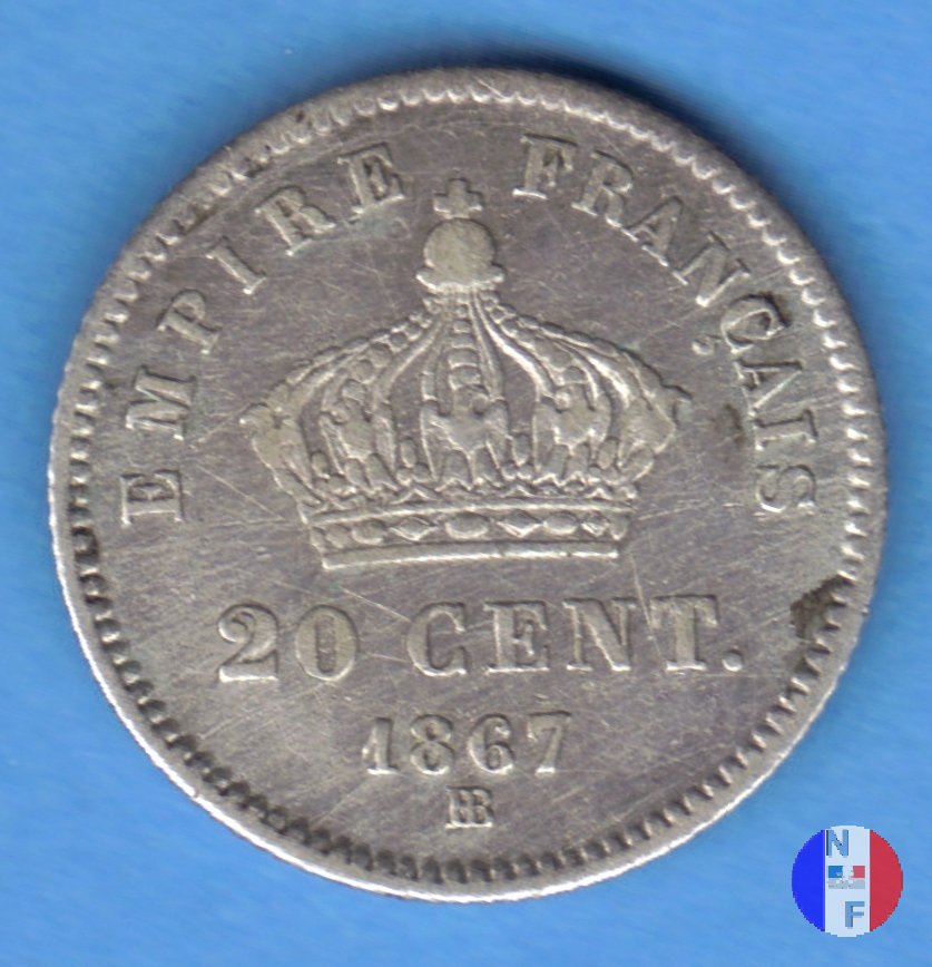 20 centesimi - testa laureata, grande modulo (1867 - Strasburgo) | Wed 17/03/10 - 00:43 | |||