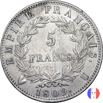 5 franchi - testa laureata, tipo Empire (1809 - Torino)
