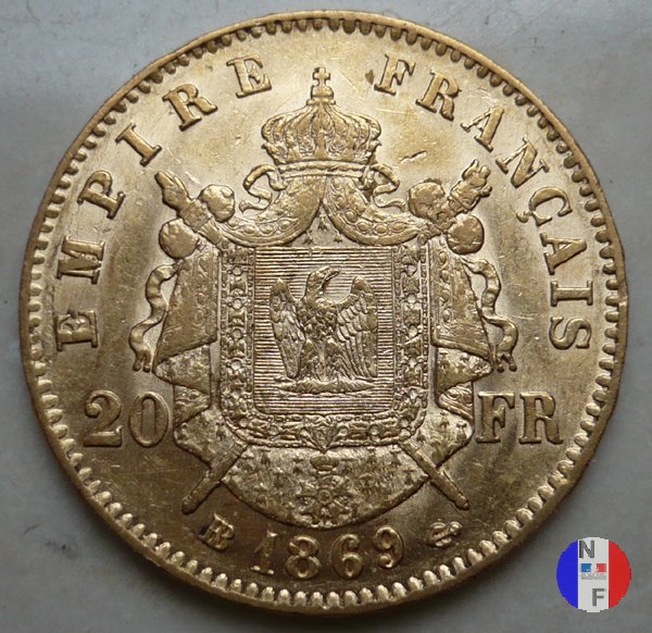 2866 20 franchi - testa laureata (1869 - Strasburgo)