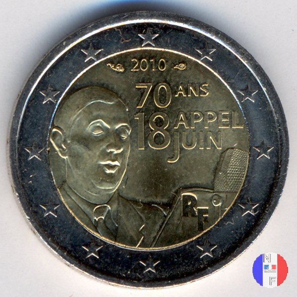 2 euro 2010-70°anni dell'appello di De Gaulle (2010 - Pessac) (D) Dritto | Sun 15/08/10 - 10:29 | |||