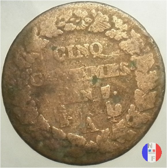 5 centesimi - ribattuti su monete da 1 decimo (1796-1797 - Limoges) Variante CNIQ | Maison Palombo | Sat 6/09/08 - 22:29 | ||